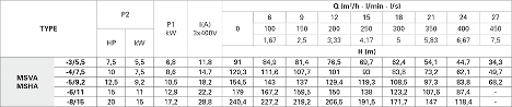 PENTAX MSVA 4/7,5 có dải cột áp từ 120,3m - 49,7m tương ứng với dải lưu lượng là 0 - 27m³/h.