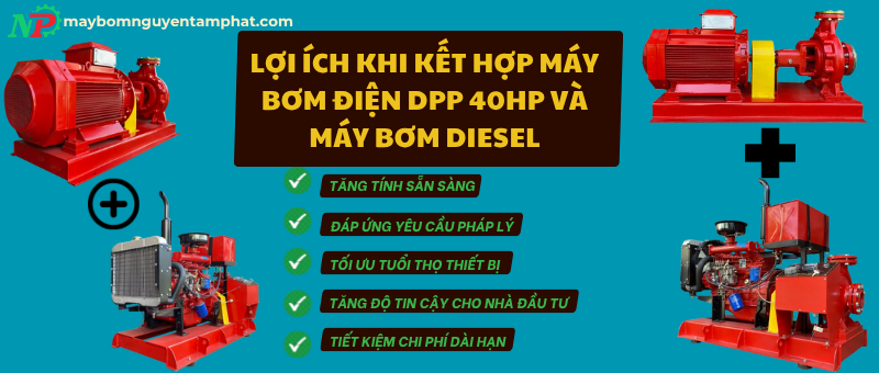 ✅ 3. Lợi ích khi kết hợp máy bơm điện DPP 40HP và máy diesel